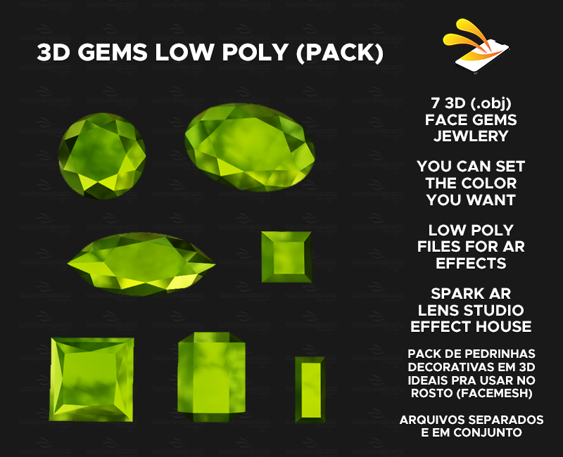 3D Gems Low Poly - Jewlery (.obj) - Spark AR, Lens Studio, Effect House