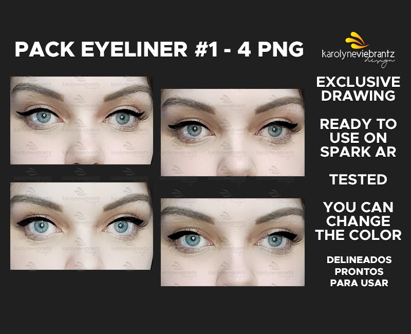 ZIP file with 4 makeup EYELINER PNG HD files ready to use in Spark AR.